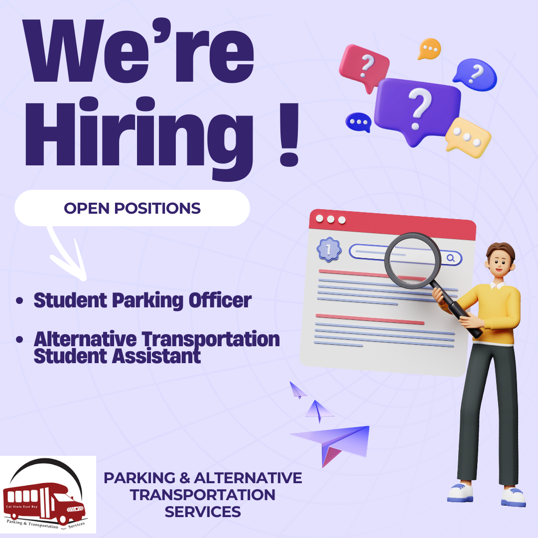 The Parking & Alternative Transportation Services Department's mission is to provide & promote alternative transportation options to our campus community and guests while also providing a safe, well maintained parking infrastructure that allows the Cal State East Bay Community to get to their destination as safely and efficiently as possible.