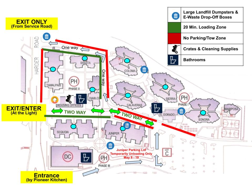 Please review the map below to review areas of designated 20-minute loading zones or no parking zones. Please follow the signage.