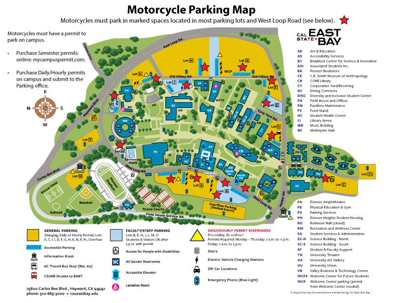- If you purchase a semester/2-year vehicle parking permit you can add on the motorcycle permit at no additional cost. After your purchase, stop by our office (or email parking@csueastbay.edu) to register your motorcycle with us. We will need the motorcycle license plate # and your information.