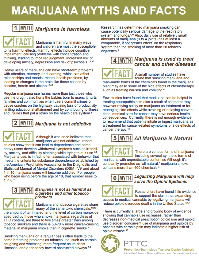 Myth: Smokeless tobacco is a safe alternative to smoking.- Truth: Smokeless tobacco delivers nicotine in each use, potentially more than smoking cigarettes, and it carries its own health risks, including increased risk of oral cancer and other diseases.